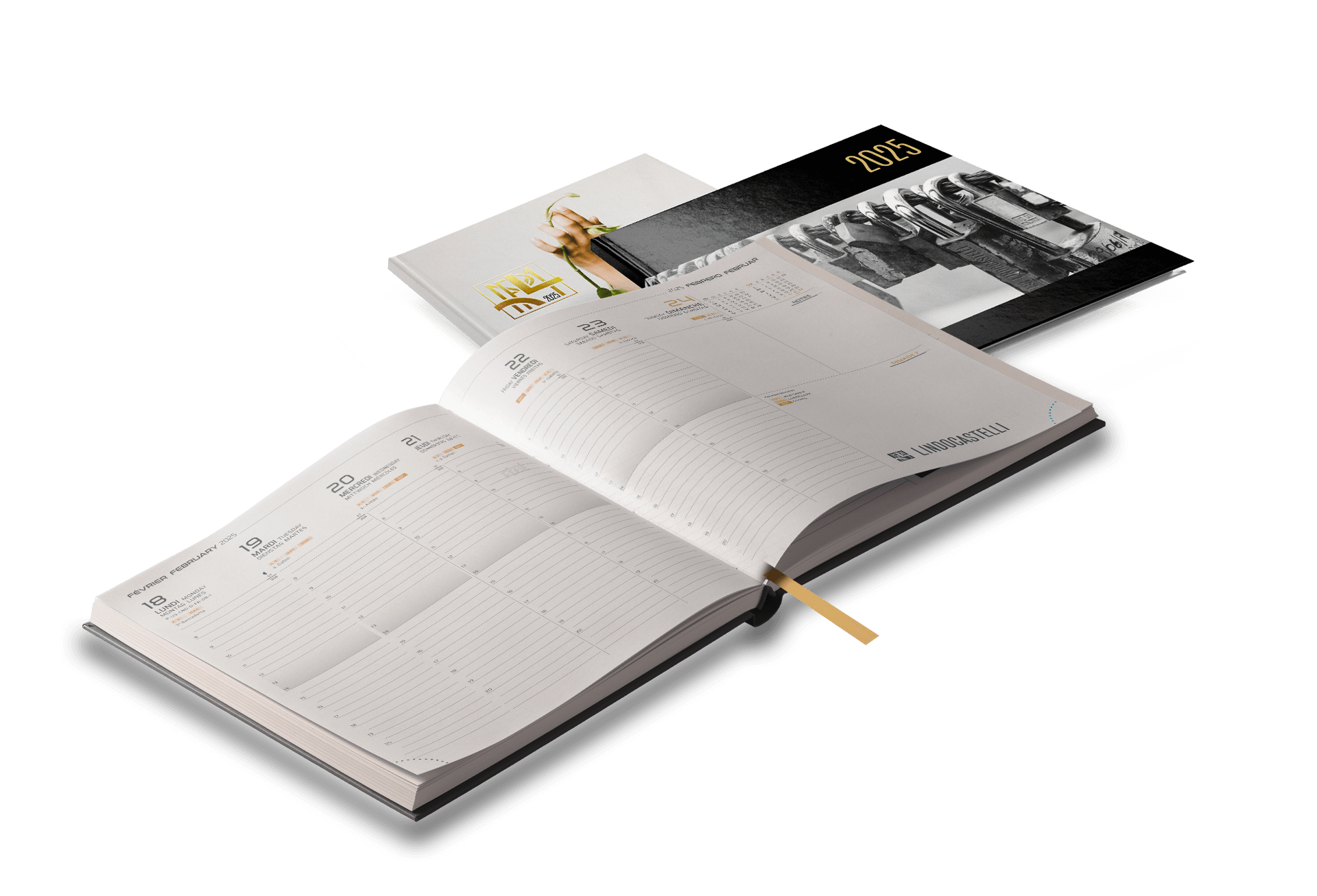Intégrez le quotidien de vos clients avec nos agendas publicitaires utiles, esthétiques et faciles à transporter pour planifier les rendez-vous, avec une couverture matière ou imprimée personnalisable.