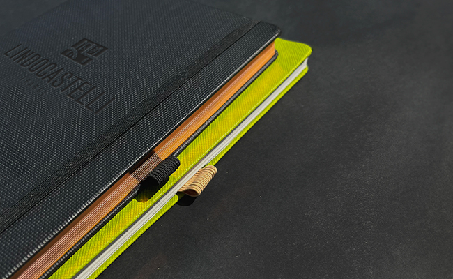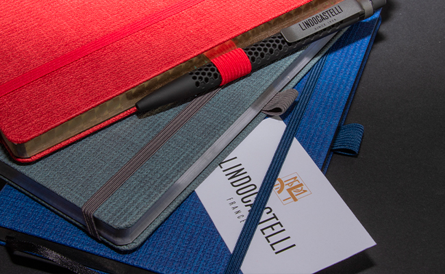 Les carnets que nous vous proposons sont entièrement personnalisables, ils peuvent être réalisés à l’image de votre entreprise. Ton sur ton pour plus de sobriété ou choix de couleur contrasté pour vous démarquer, ces options offrent une opportunité de personnalisation supplémentaire. Les caractéristiques sont les suivantes : élastique et porte crayon de 8mm de large.