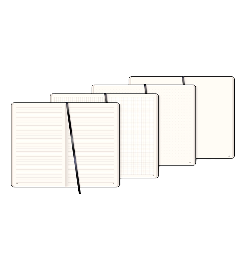 Plusieurs formats et déclinaisons d’intérieur vous sont proposés : ligné, quadrillé, à points, neutre, avec spirale, avec perforations. Élastique, porte stylo, tranche ou encore signet toutes ces options vous permettent de concevoir un produit sur-mesure.Découvrez toutes nos couvertures :